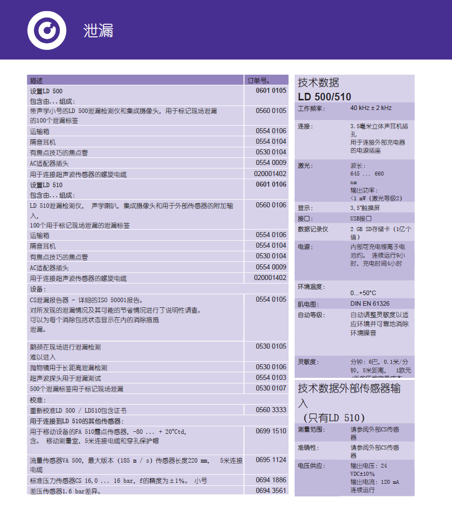 检测压缩空气、气体、蒸汽、管道、真空装置的泄漏;